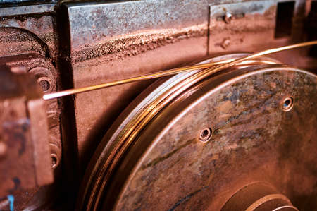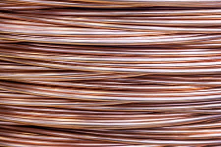 Copper wire and metal industry closeup on metal background