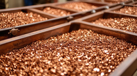 Medium shot of workers shredding copper scraps in an industrial recycling facility emphasizing efficient waste processing for sustainable copper production.