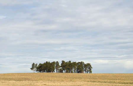 Hills panorama at sunset. Pines over hill. Minimal landscape