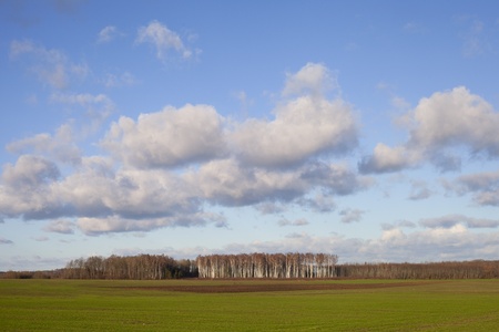 Landscape with green field and blue sky