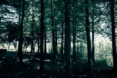 forest background ,Sunrise in a beautiful forest in Seashore forest in Thailand.