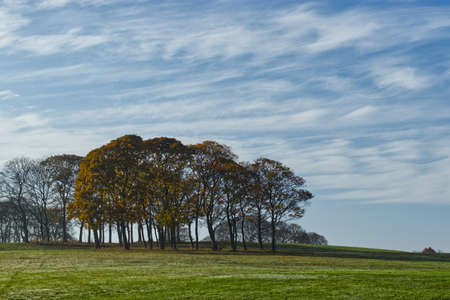 Beautiful English landscape with ancient row of trees, in spring.