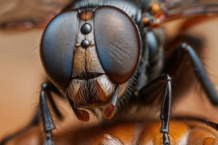 A macro photograph showcasing a detailed view of a fly.
