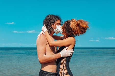 Love Couple concept. Quality time together, improve relationship, Physical Touch. Happy young man and woman hug and kiss outdoor.