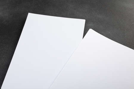 White business card sheet of paper a4 stack on a dark table. Clean portrait A4.