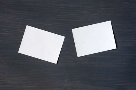 Two white paper notes with wooden holders isolated at black paper background for presentation
