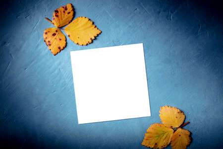 Autumn background with copy space. A square card with fall leaves, shot from the top