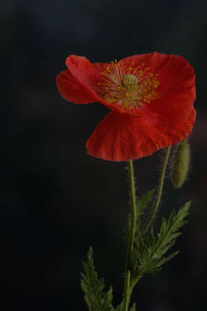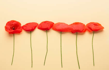 Poppy flowers in the studio. Concept of minimalism and elegance