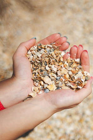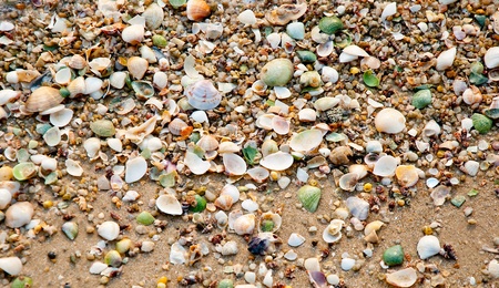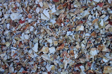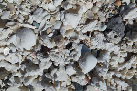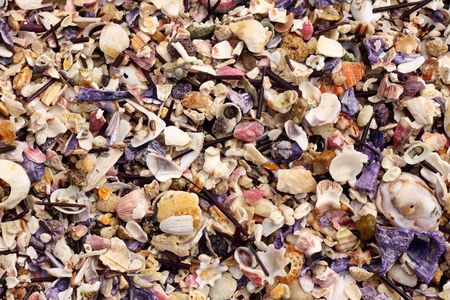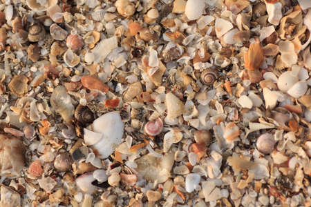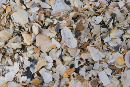 background small shells, shell fragments. Sea Shore many different crushed shells forming a beautiful background pattern.