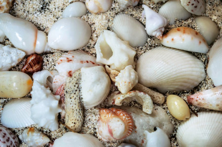 Discover the serene and captivating beauty of various seashells beautifully scattered across sandy shores