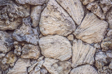 Abstract Composition Textured background. Mystic mood. Close view dry round stone shaped and formless group of sea ocean coral, white grey colour, rough surface. Ideal for web banner background design
