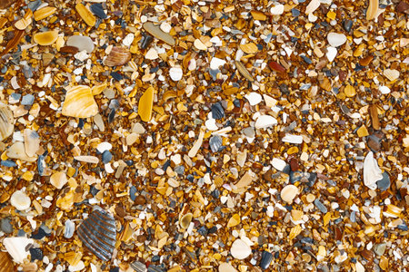 Crushed sea shells texture on a romanian beach, abstract backdrop
