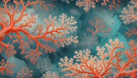 Artistic representation of vibrant coral reef elements in striking red and blue shades, reflecting the beauty of marine life and ideal for various creative projects.