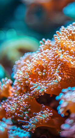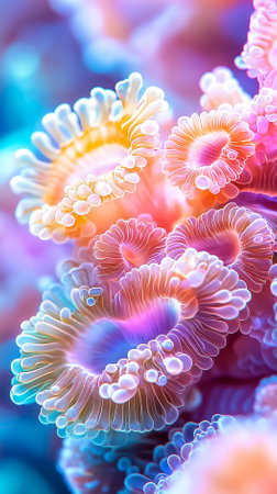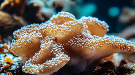 Close-up of a Hammer Coral colony, its fleshy polyps waving softly in the oceanaes current, creating a beautiful and tranquil marine environment