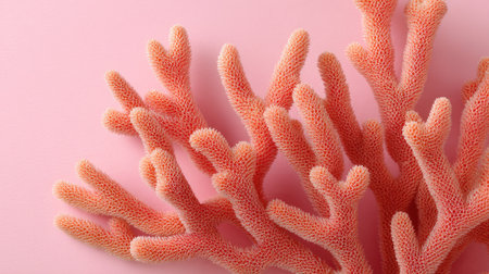 A striking image of a coral branch against a soft pink background, highlighting the beauty and delicate textures of marine ecosystems. Perfect for art and nature themes.