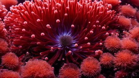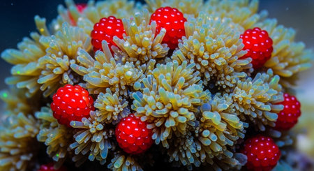 AI Generated. Vibrant coral polyps underwater reef closeup