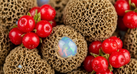 Generative AI Macro shot on tiny polyps on Montipora sps coral in saltwater aquarium