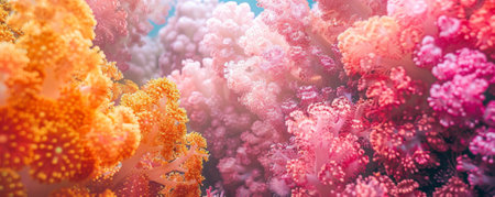 Cinematic texture of colorful coral reefs viewed from above in vibrant underwater setting