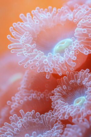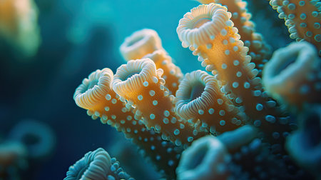Close-up of a Hammer Coral colony, its fleshy polyps waving softly in the oceanaes current, creating a beautiful and tranquil marine environment