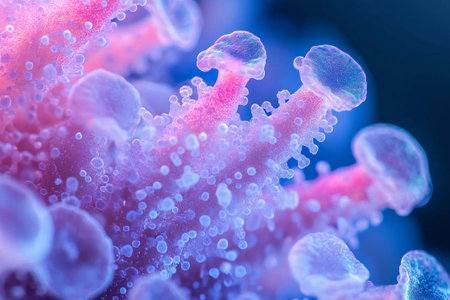 3D illustration of a microscopic close-up view of the structure of a virus.