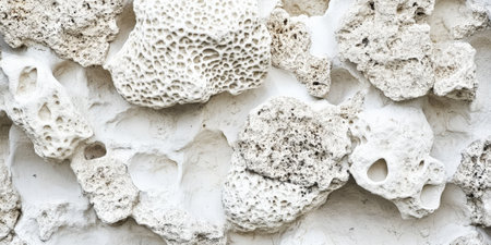 Ocean coral stone background with textured porous formations, bleached white by saltwater.