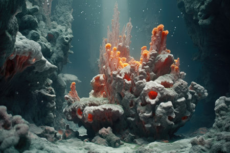 An AI generated illustration of a close up shot of a group of coral polyps