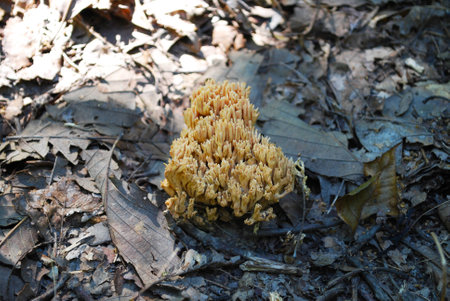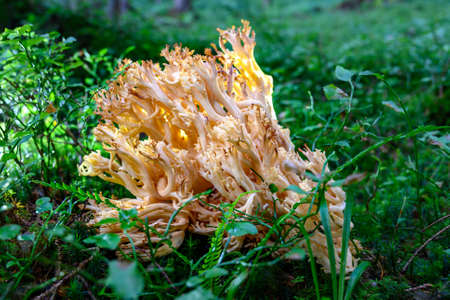 Ramaria flava mushroom. Yellow coral fungi at the foresst
