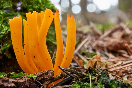 Amazing forest mushroom looks like flames - Calocera viscosa