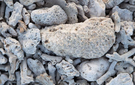 Abstract Composition Textured background. Mystic mood. Close view dry round stone shaped and formless group of sea ocean coral, white grey colour, rough surface. Ideal for web banner background design