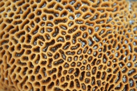 Close up of the surface of dead coral. Corals are marine invertebrates within the class Anthozoa of the phylum Cnidaria.