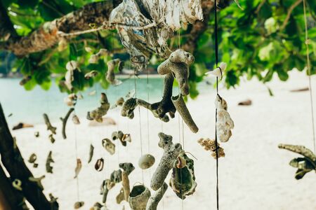 Coral hanging a tree on the beach at against beautiful nature of Nipah Bay at Pangkor Island, Malaysia