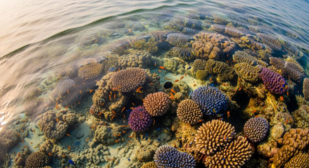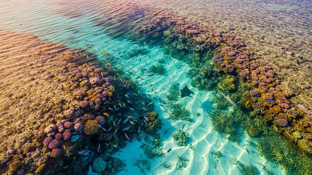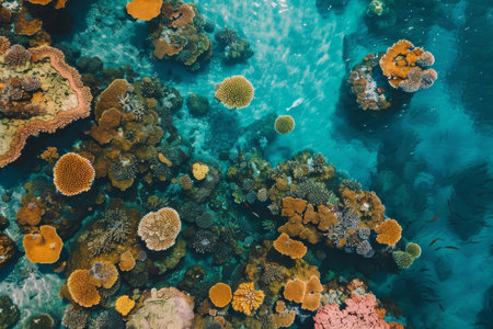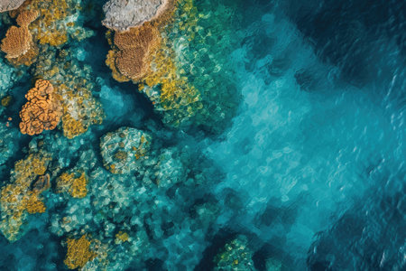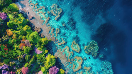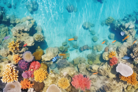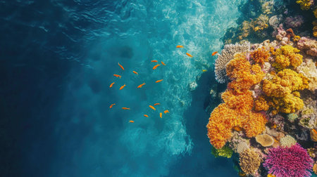 An Aerial view of vibrant coral reef with diverse marine life and clear water