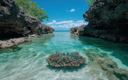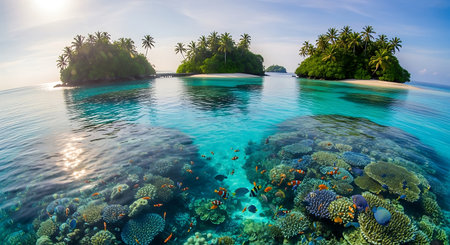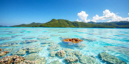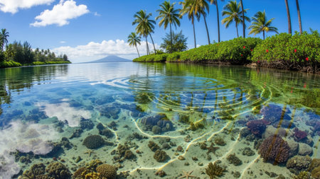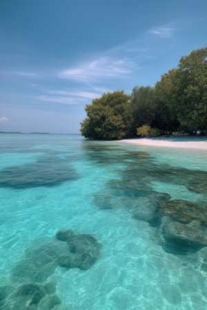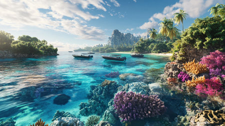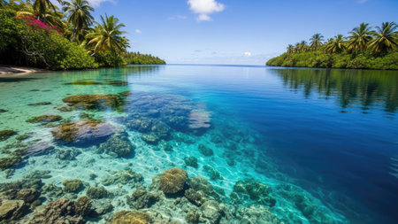 AI Generated. Stunning Tropical Landscape with Clear Water and Coral Reef View