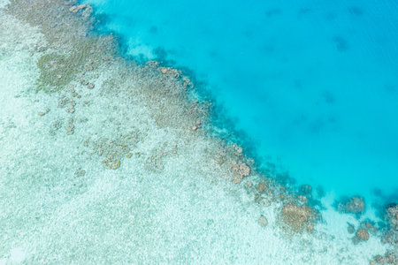 Discover the stunning beauty of an aerial view featuring a vibrant coral reef with clear turquoise water, showcasing a serene natural landscape ideal for relaxation and exploration.