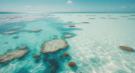 AI Generated. Aerial View of Coral Reefs in Clear Tropical Waters