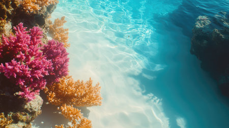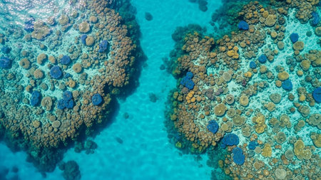 Vibrant underwater coral reef with contrasting colors viewed from above