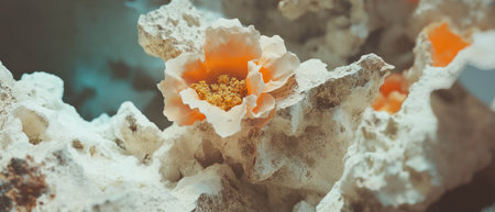 Abstract 3D flowers with stone textures in earthy tones and natural finishes