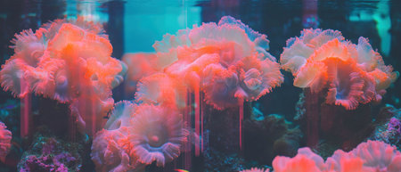 Illustration of pink and blue corals, sea concept, relax, Generated AI