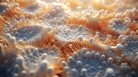 3D illustration of a microscopic close-up view of the structure of a virus.