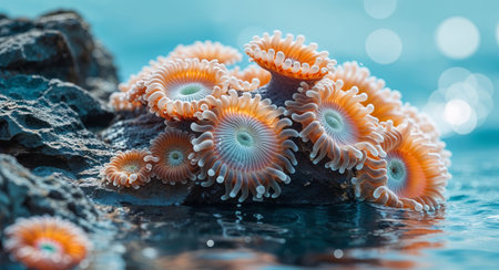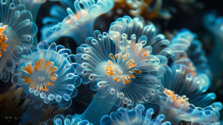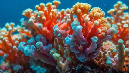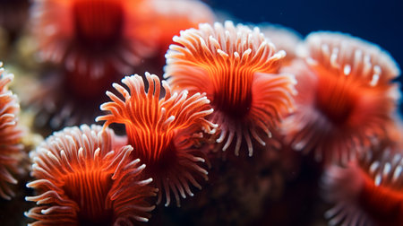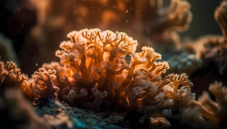 AI Generated. Vibrant coral polyps underwater reef closeup