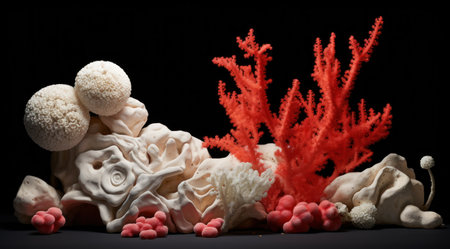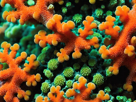 Colorful coral reef displays intricate structures and textures, surrounded by tranquil water, highlighting the diversity and beauty of marine ecosystems, AI generated