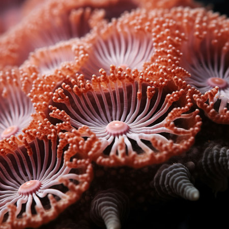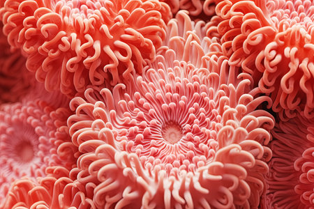 An AI generated illustration of a close up shot of a group of coral polyps