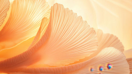 This image captures the delicate layers of soft peach petals illuminated by gentle light. Water droplets enhance the natural beauty and elegance, evoking serenity.