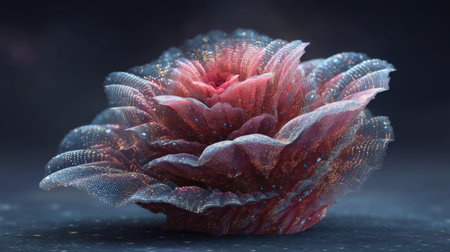Discover a stunning 3D floral design showcasing exquisite petals with vibrant textures and ethereal glowing particles that create a dreamlike ambience and elegance.