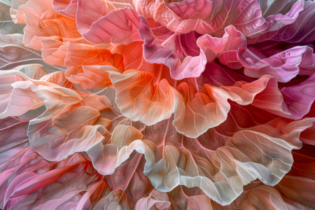 A stunning close-up of delicate petals in blush and coral hues, showcasing intricate textures and graceful flows, perfect for enhancing any artistic or floral theme.