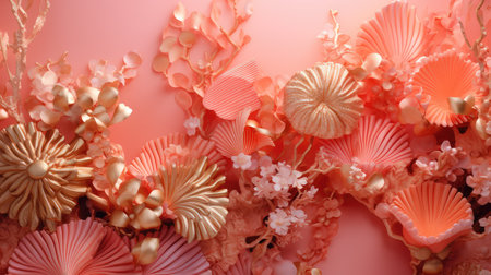 Elegant pastel pink scene with abstract coral shapes for backgrounds