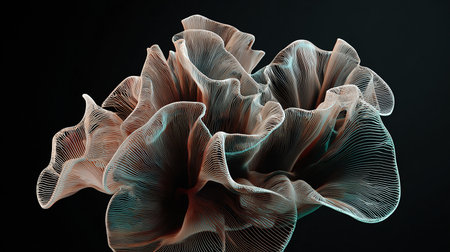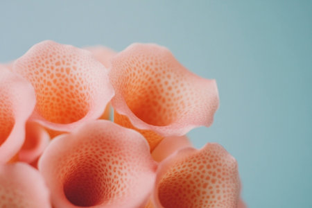 Close up of soft coral like shapes in pastel colors, emphasizing organic forms and textures, ideal for nature themes or artistic concepts