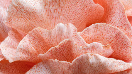 Details of an pink oyster mushroom, Pleurotus djamor, pink macro background