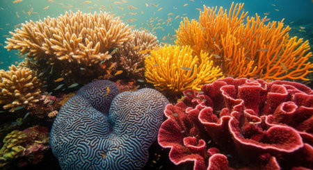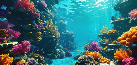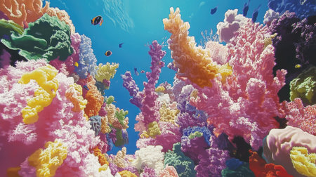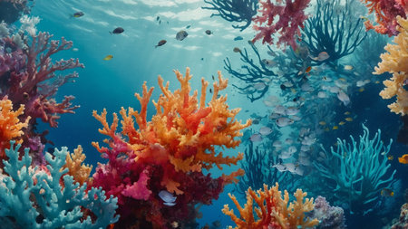 Vibrant Underwater Coral Landscape with Colorful Marine Life.