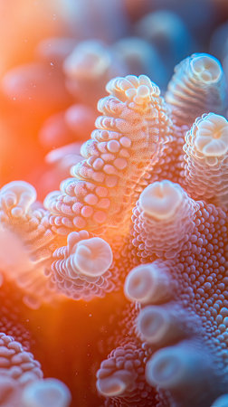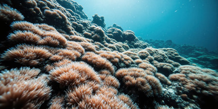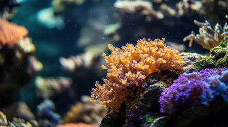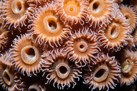 coral polyps with extended tentacles, created with generative ai